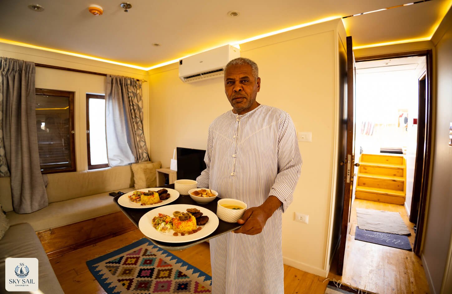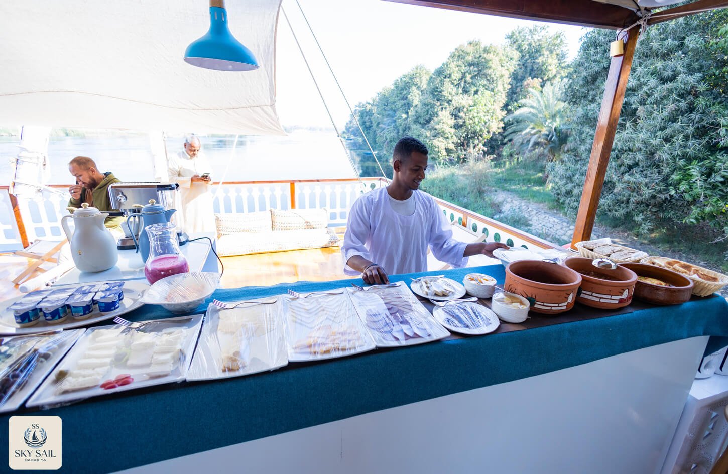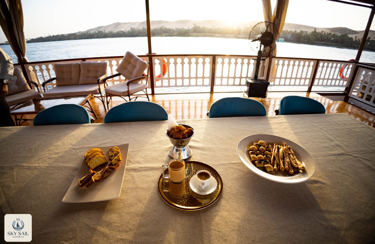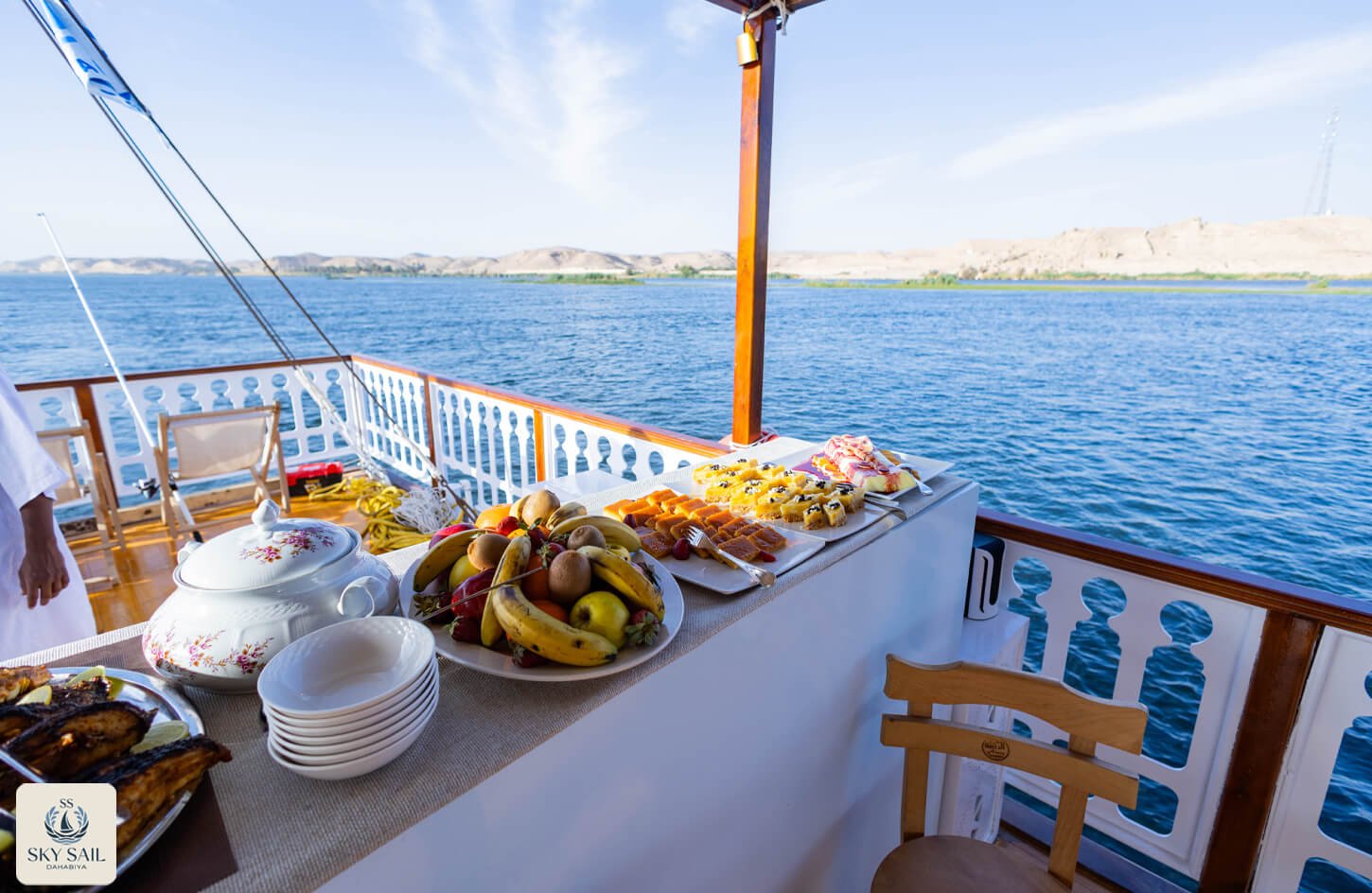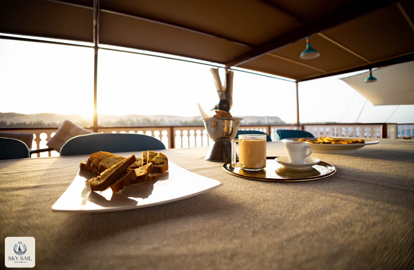 Savor the essence of Egyptian hospitality in our Dining Gallery. From sunlit breakfasts on deck to candlelit dinners under the stars, our gallery showcases the flavors, atmosphere, and shared moments that make dining aboard Sky Sail Dahabiya unforgettable. Each photo highlights the elegance of our culinary spaces and the rich variety of dishes served with care and authenticity. A visual feast awaits.