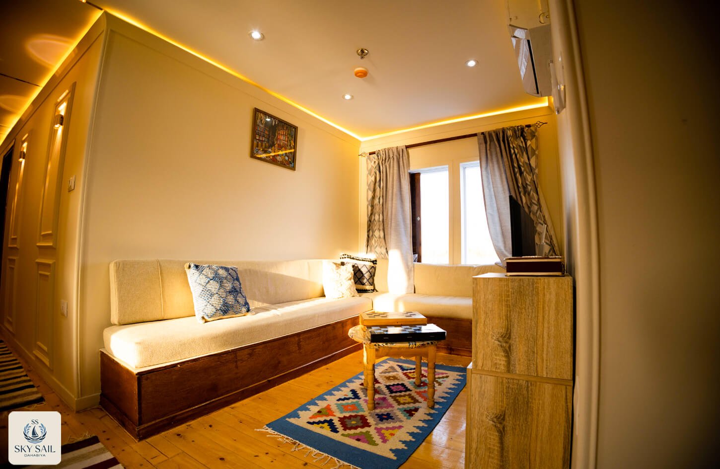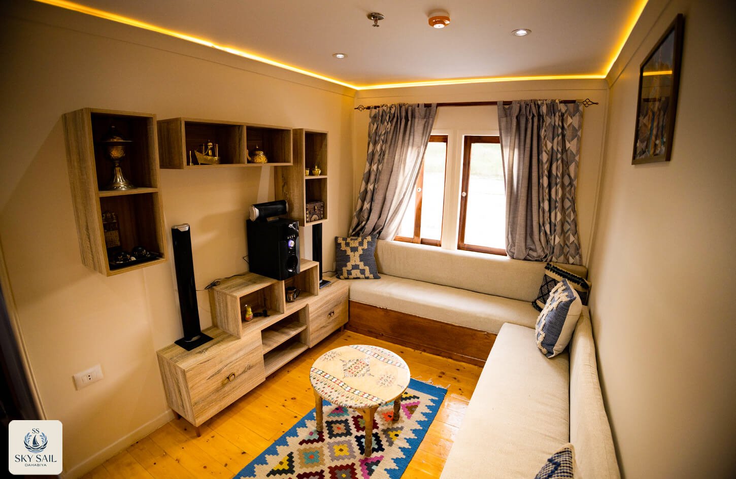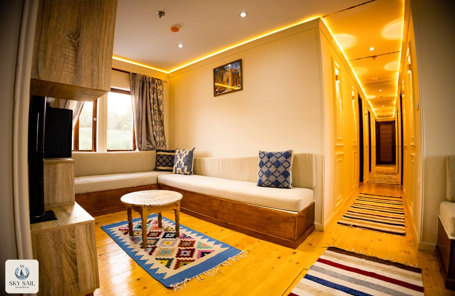 Discover shared elegance in our Living Room Gallery. These welcoming spaces serve as the heart of your Dahabiya experience—a place to gather, relax, and connect. Adorned with traditional textiles, cozy seating, and panoramic views, our living rooms embody warmth and authenticity. Every image invites you to linger longer and enjoy the journey with fellow travelers.