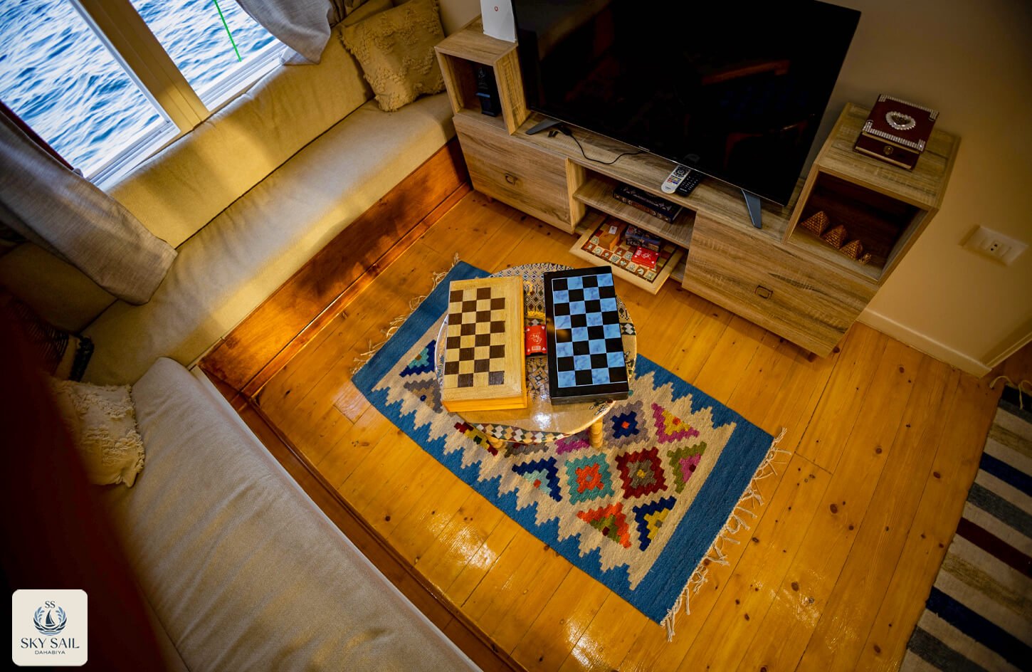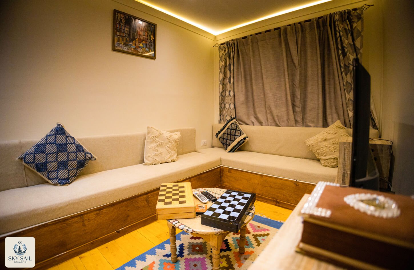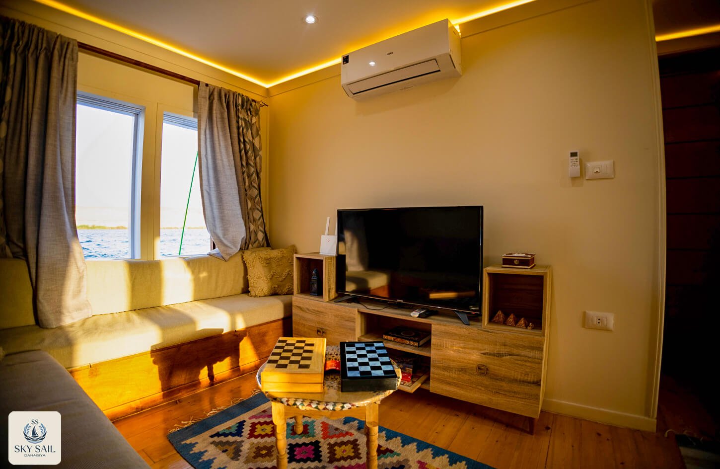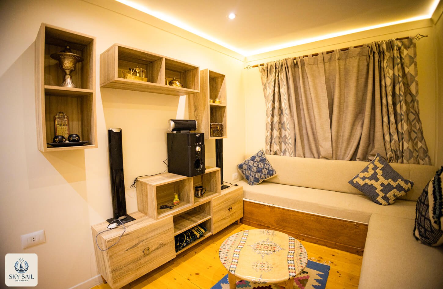 Discover shared elegance in our Living Room Gallery. These welcoming spaces serve as the heart of your Dahabiya experience—a place to gather, relax, and connect. Adorned with traditional textiles, cozy seating, and panoramic views, our living rooms embody warmth and authenticity. Every image invites you to linger longer and enjoy the journey with fellow travelers.